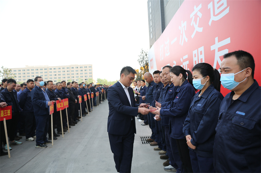 为切实增强全体一线员工质量安全工作的使命感、紧迫感和责任感,努力开创公司高质量发展新局面,2023年4月19日,河南YY易游m6米乐重型机械股份有限公司召开2023年一季度质量安全奖励大会,执行总裁谢保华,质量安环中心总监钮鹏超,制造管理中心副总监代艳云、孙朋,以及生产系统各部门负责人和全体一线员工参加会议。会议由质量安环中心副总监王爽主持。